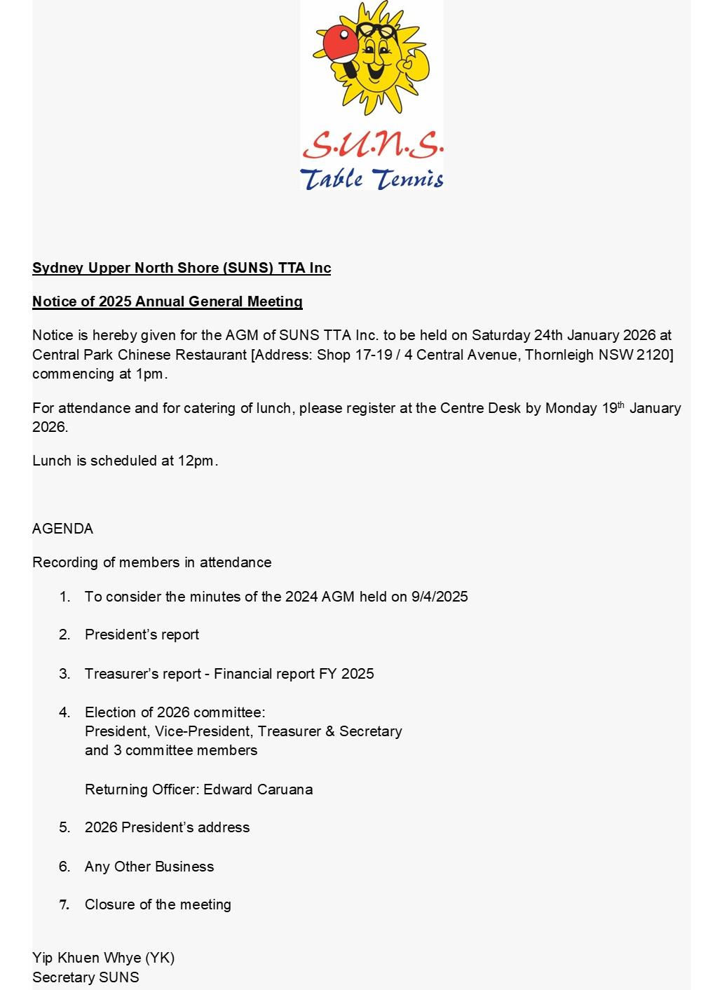 Notice of AGM                 Agenda AGM
